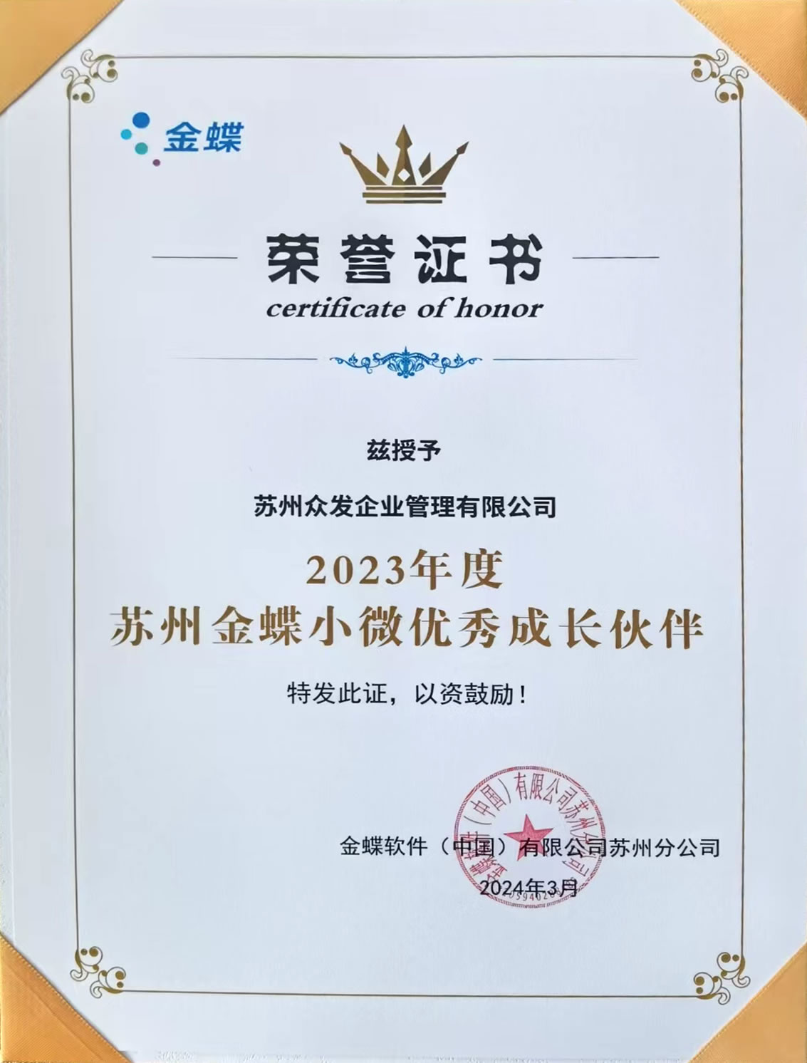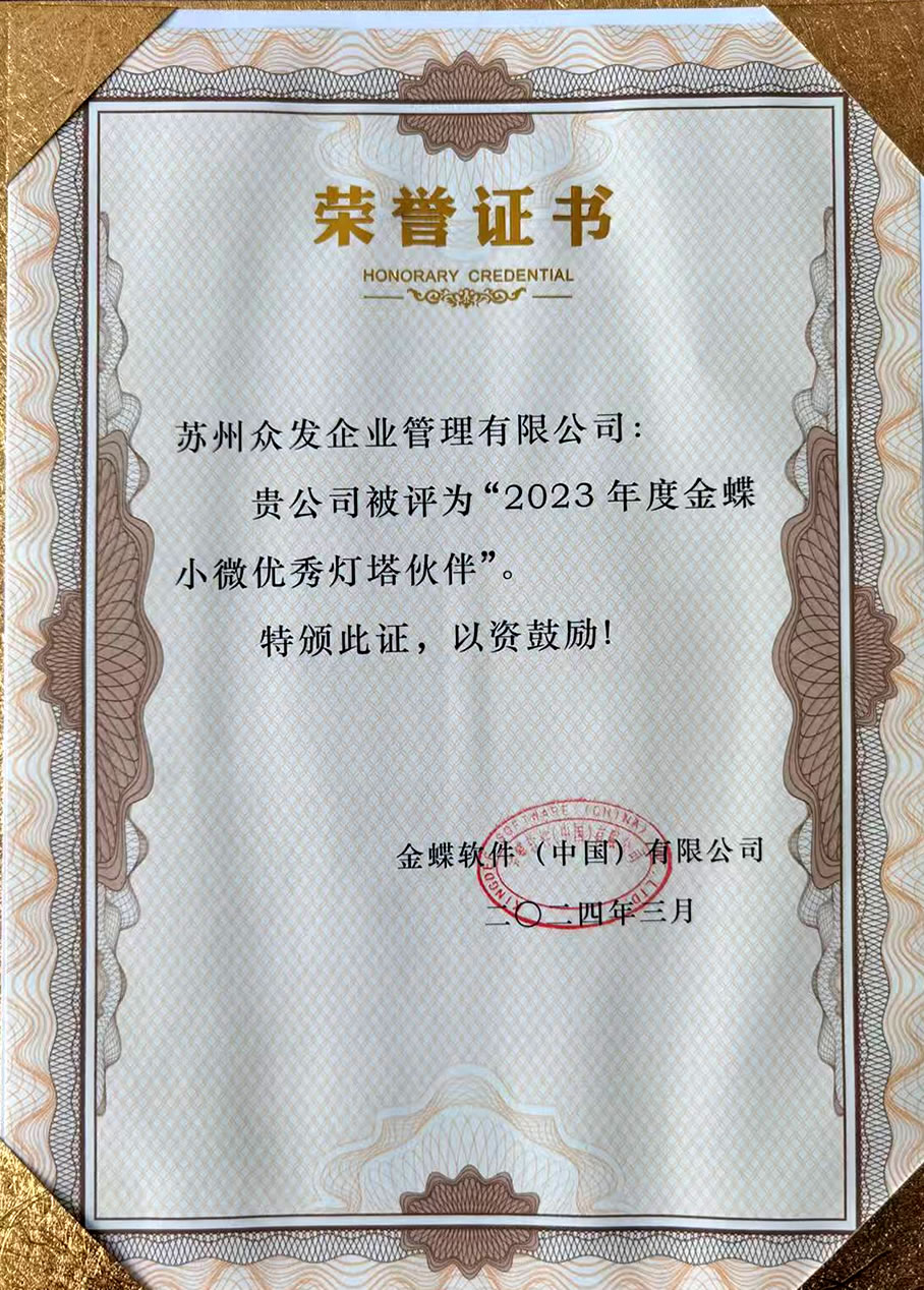 金蝶小微優(yōu)秀伙伴2023年度